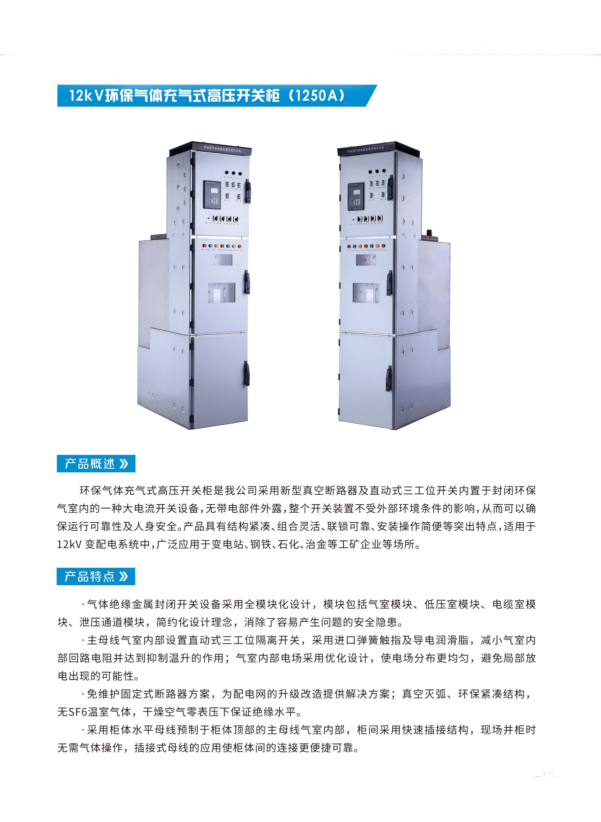 12kV環保氣體充氣式高壓開關柜(1250A)