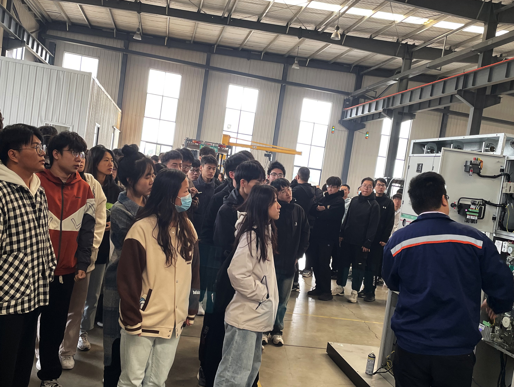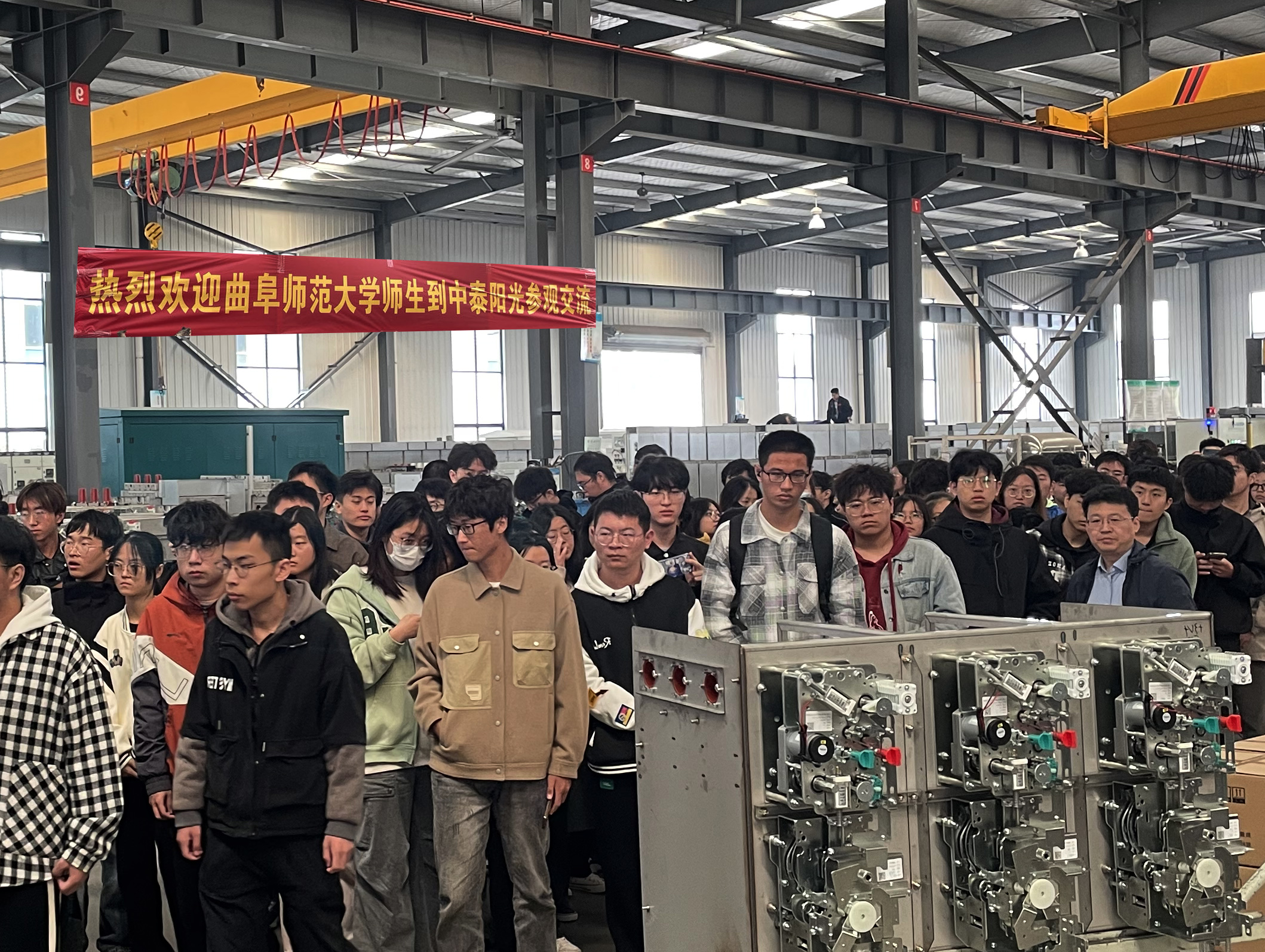 2023年11月9日曲阜師范大學(xué)工學(xué)院2021級(jí)自動(dòng)化、電氣專(zhuān)業(yè)的200余名大學(xué)生到我司生產(chǎn)基地見(jiàn)習(xí)參觀。